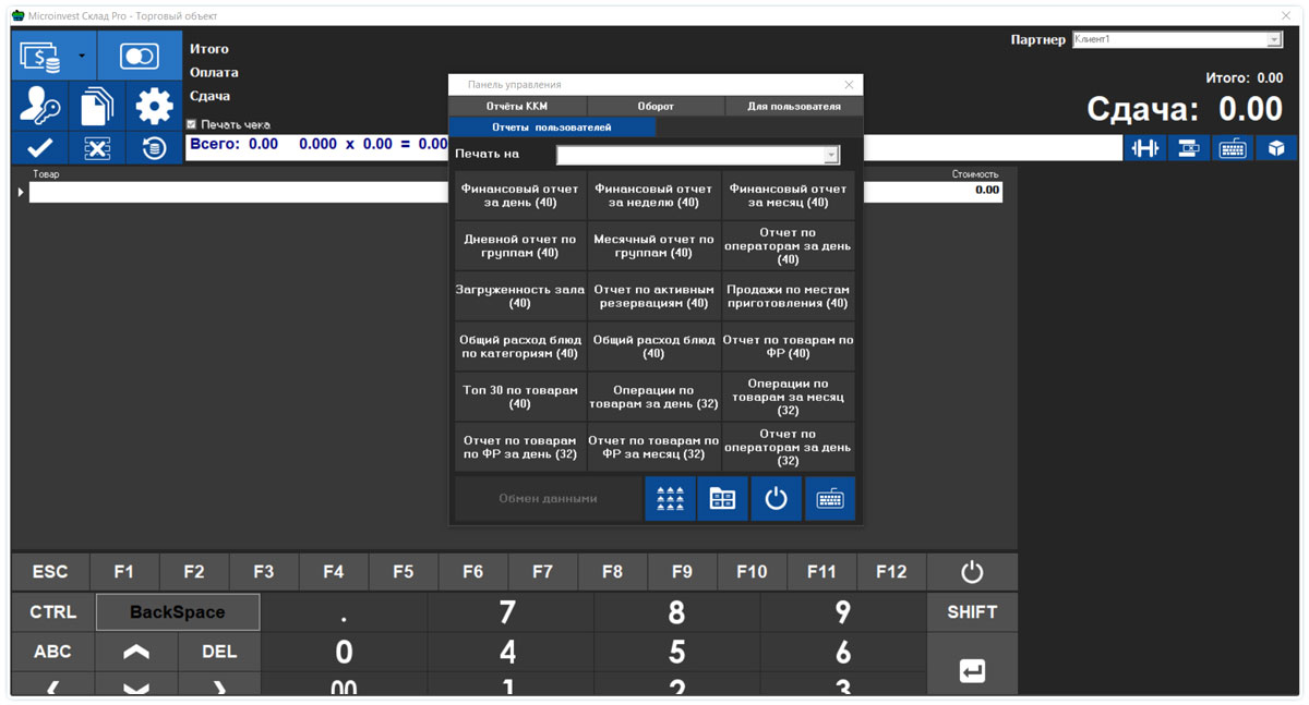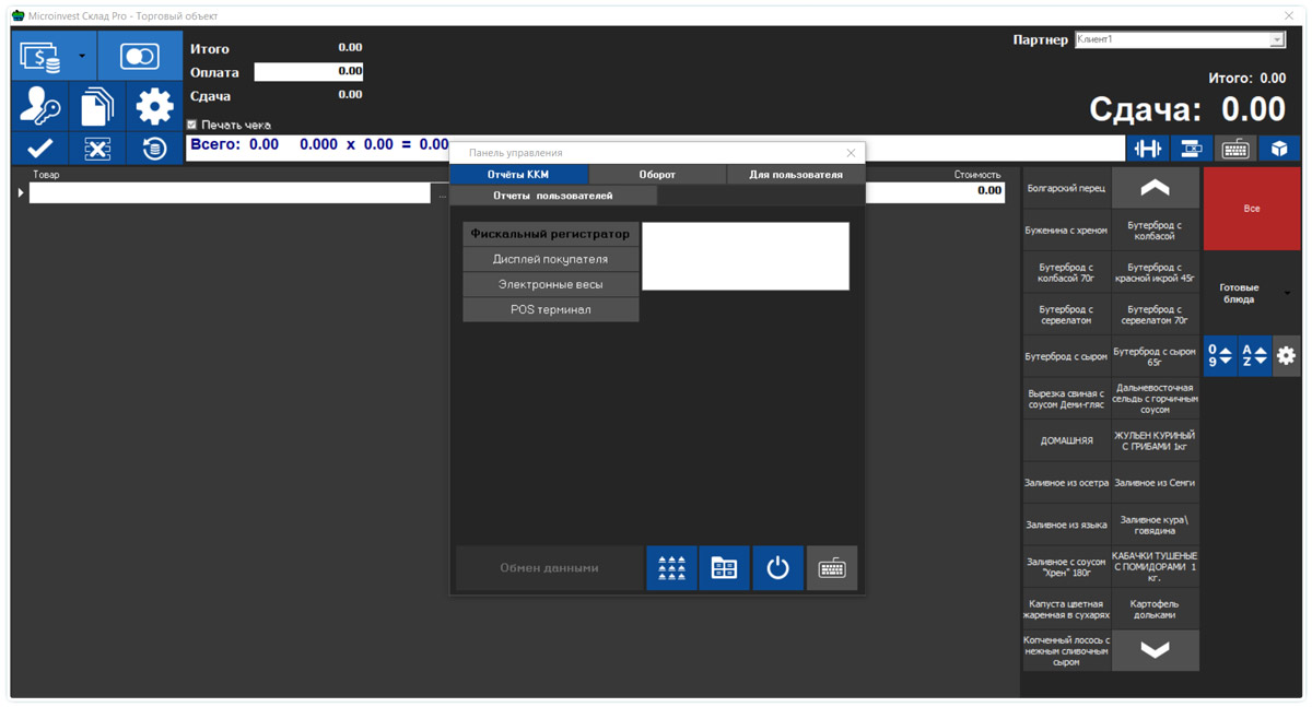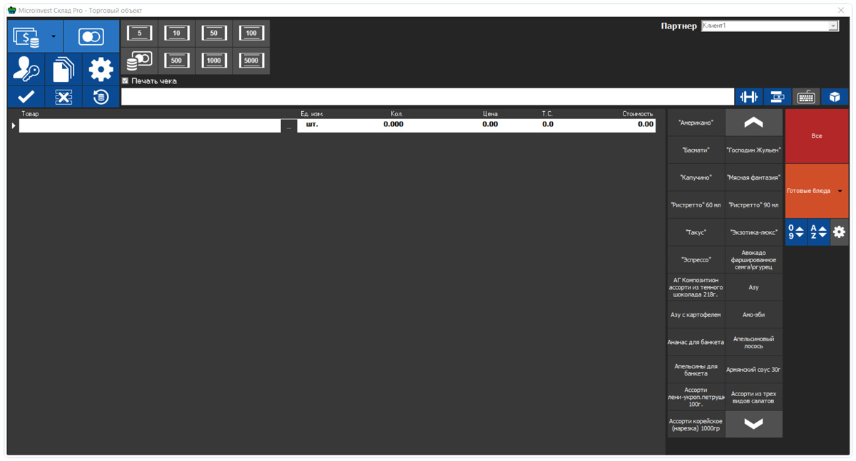 • Возможность создания товаров, именных покупателей на месте кассира;