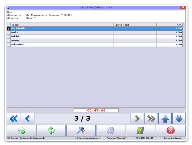 Microinvest Order Assistant – приложение оптимизирующее работу повара в ресторане при принятии и выполнении заказов. Важным дополением данного модуля является визуализация системы поступления и выполенения заказа, полученного от официанта.